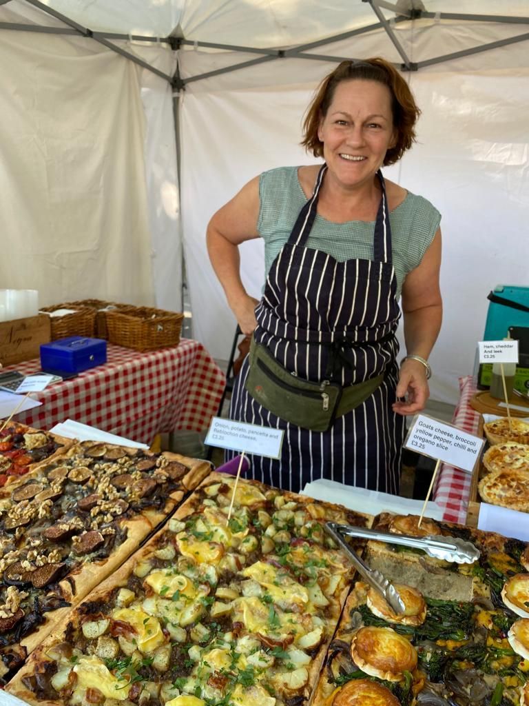 We sell soups (in the colder months), salads, savoury slices, cheese scones, quiches, jams and marmalades, focaccia and anything else we fancy, all homemade in Kew.